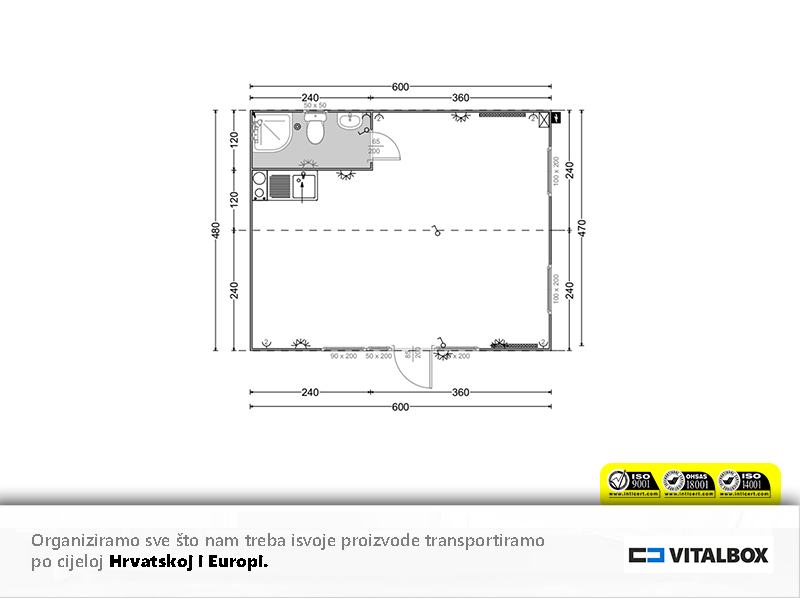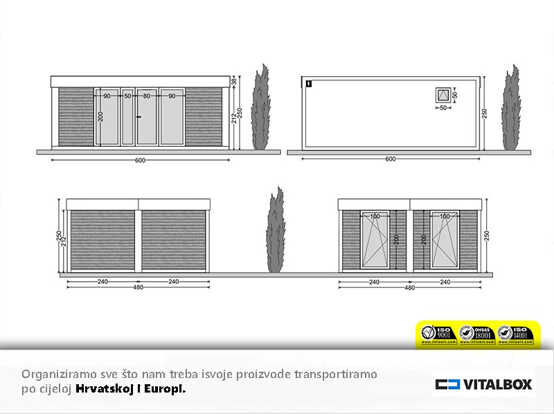 Spoljaљnje dimenzije - 480 x 600x 250cm = 28,8m2