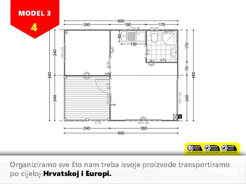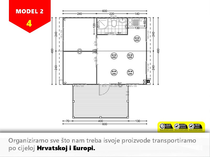 Vanjske dimenzije - 480 x 600x 285cm = 28,8m2
