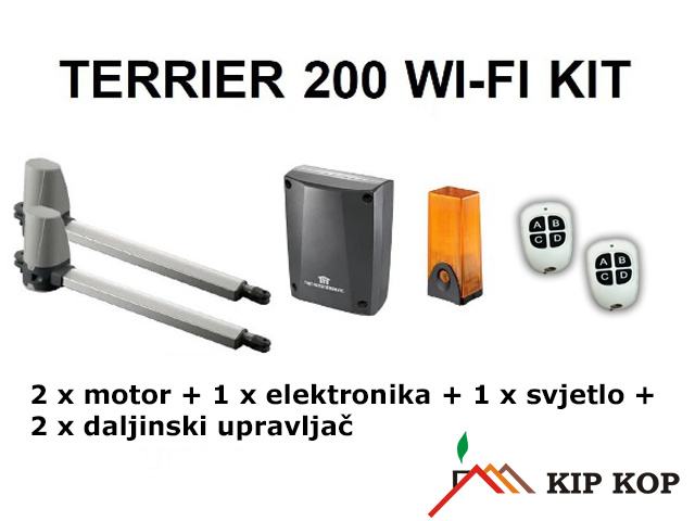 Nudimo vam vrhunski, pristupačan komplet za krilna dvorišna vrata. AUTOMATIZACIJA ZA KRILNA DVORIŠNA VRATA OGRADE, TERRIER 200 omogućuje vam jednostavnu, pouzdanu i sigurnu upotrebu vaših dvorišnih prolaznih vrata. Pouzdano upravljanje također je moguće u svim vremenskim uvjetima.