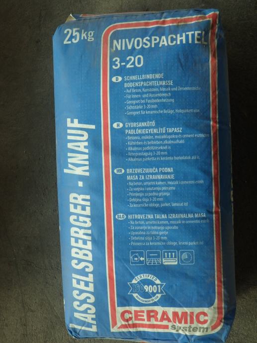 NivoSpachtel 3-20 je brzovezujuća masa za izravnavanje mineralnih podloga debljine 3-20mm na unutarnjim i vanjskim površinama. Nije samonivelirajuća. 25kg=13,85€