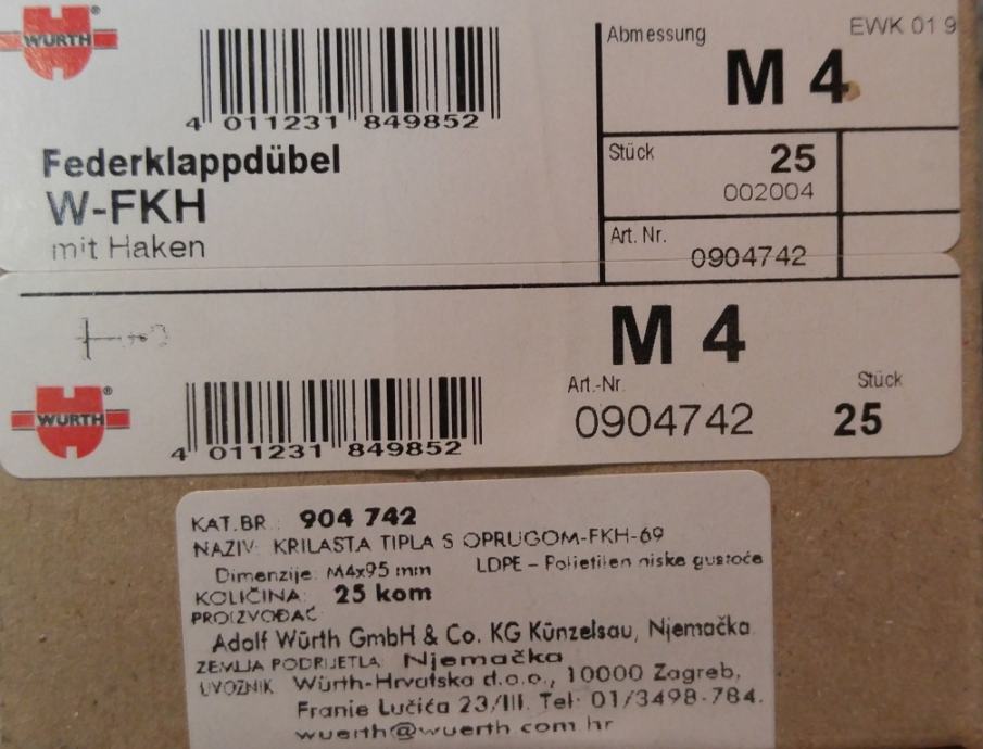 Krilasta tipla s oprugom, navojnom šipkom, podloškom, osiguračem protiv okretanja i zaštitom od korozije, prenošenje opterećenja na veću površinu podloge