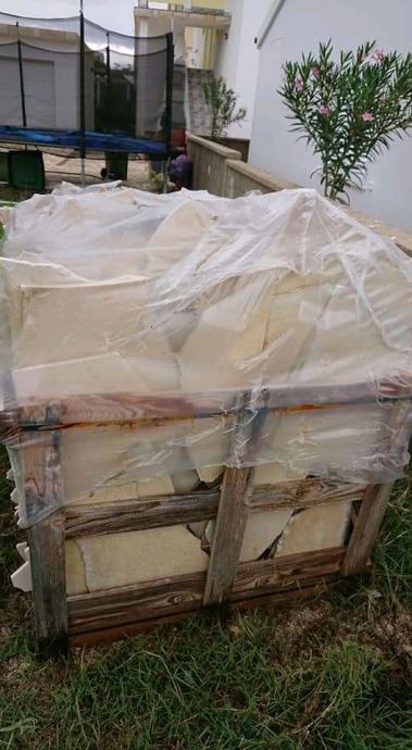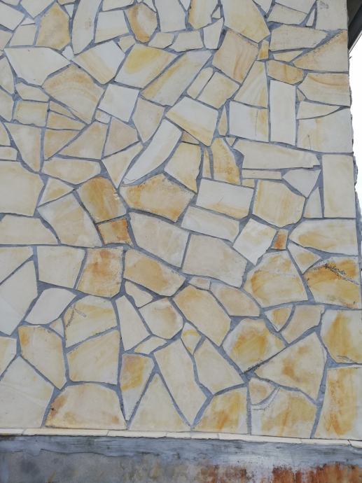 Prodajem njemački kamen ravni zuti cetkan debljine od 1cm do 2cm 400 m2 ravan sa obadvi strane sluzi za oblaganje zidova staze oko kuće moze i za unutra umjesto keramike na terase za oko bazena neklize se kamen otporan na visoke temperature cijena 12 eura kvadrat bolji je od benkovackog zovite na broj mobitela 0997365669