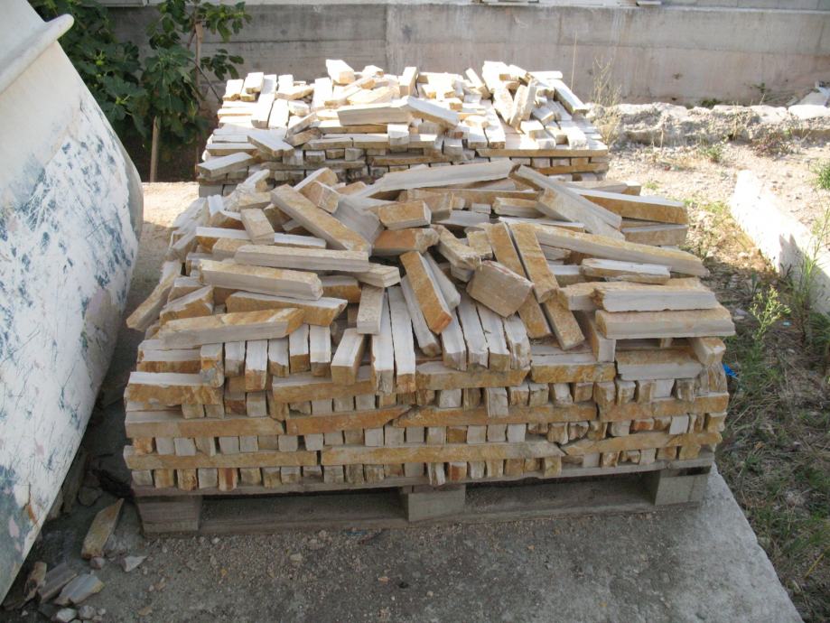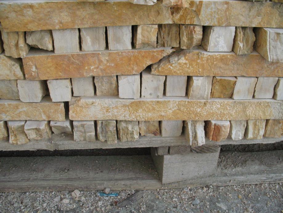 Vrlo, vrlo povoljno prodajem cca 11 m2 rezanog po narudžbi benkovačkog kamena na dvije palete. Kamen je kupljen za izradu fasade kao na fotografiji.