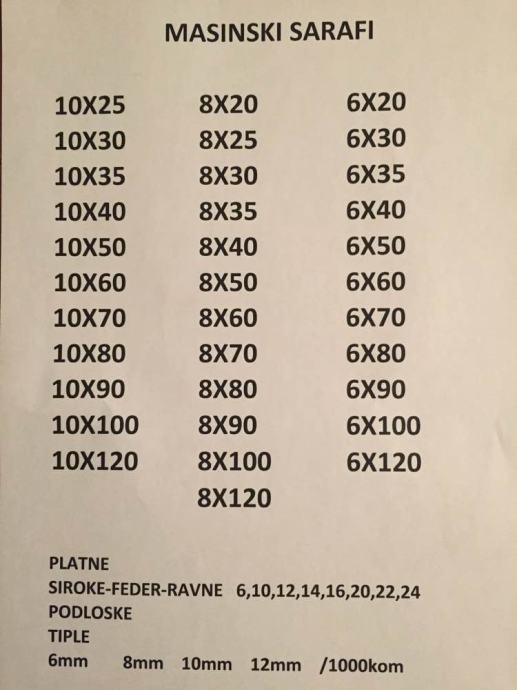 PRODAJE SE VISE VRSTA I DIMENZIJA SARAFA,MATICA,PODLOSKI,SAMOUREZUJUCIH SARAFA, STOP MATICA