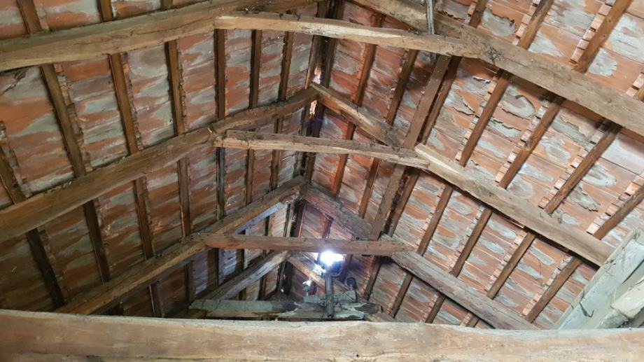 Prodaje se hrastov sjenik. Drveni dio dimenzija 7x5m + zidani dio 3x5m. Sva drvena građa, uz vašu demontažu, 2500kn. Crijep na poklon. Puna cigla iz zidova se prodaje zasebno.