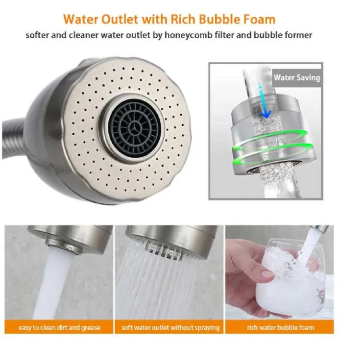 Metoda ugradnje: Stojeća slavina Okretni izljev za 360°, odaberite svoj omiljeni način, mlaz ili prskanje