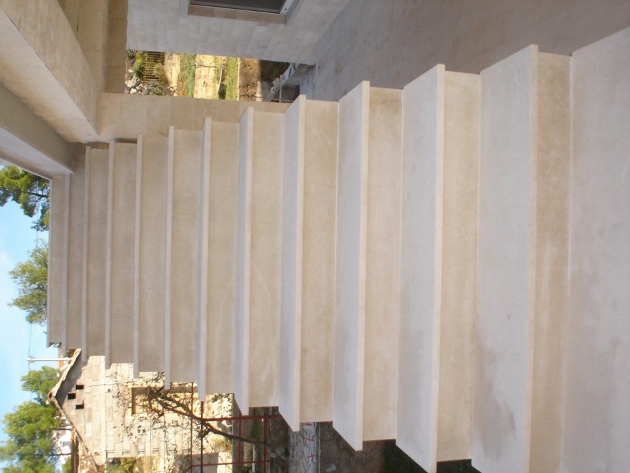 U ponudi imamo stepenice od svih vrsta bračkog kamena: Veselje, Avorio, Machiatto, Venato Sv. Petar i dr. Stepenice možemo obraditi kao polirane, štokovane, fino brušene i anticato (štokovano pa četkano). Verzija anticato je praktična za vanjsku upotrebu zbog protuklizne površine a opet je jednostavnija za odrzavanje nego štokovana. Standard za stepenice je 3 cm debljina za gazište i 2 cm za čelo. Cijena je po metru dužnom a u istu je uključeno gazište i čelo. Proizvodna radiona nam ja na otoku Braču a preuzeti proizvod možete u Zagrebu ili Vam mozemo dostaviti po dogovoru.