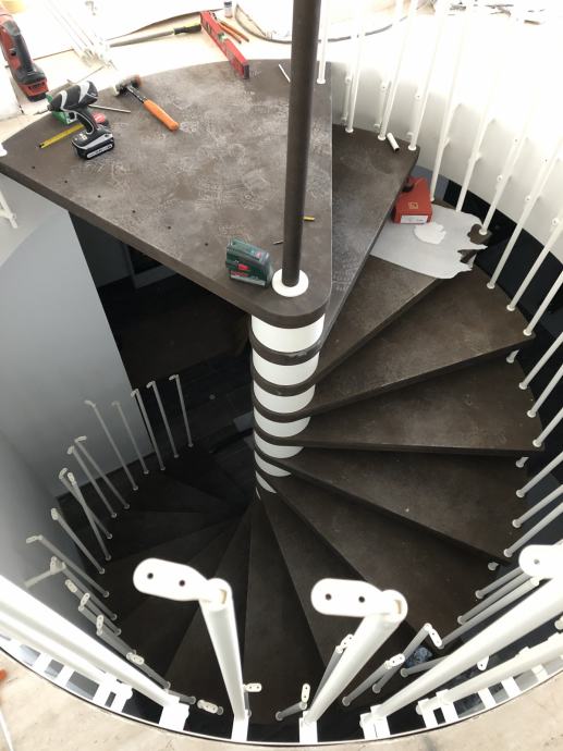 Spiralne stepenice izrađene po mjeri. Visina 2850, promjer stepenica izrađen van standarda od Fi 2000.