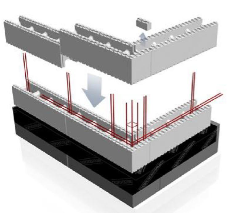 Vrlo jednostavna (blokovi se slažu kao lego kocke jedan na drugi te se postavi armatura i izlije beton u šupljinu blokova) i brza izgradnja stambenog objekta(u jednom potezu već je na zidovima s vanjske i unutarnje strane stiropor ).