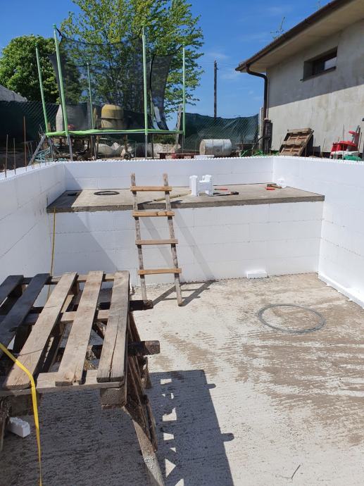 Zid se sastoji od 5 cm stiropora s vanjske strane ,15 cm beton ,5 cm unutarnje strane zida.