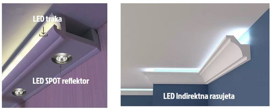 Inventivni "profili 3 u 1"- objedinjuju kutiju za instalacije, direktnu LED SPOT rasvjetu, indirektnu LED rasvjetu i štukaturu.