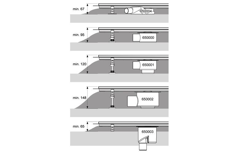 Svaki dio se može zasebno kupiti, te se svaka kanalica može kombinirati s dolje navedenim odvodima (sifonima).