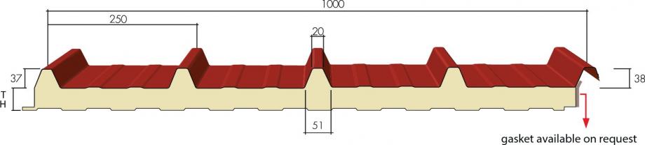 Krovni paneli sa trapezoidnim završetkom, debljine, 30, 40, 50, 60, 80, 100, 120 mm
