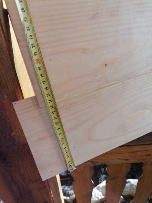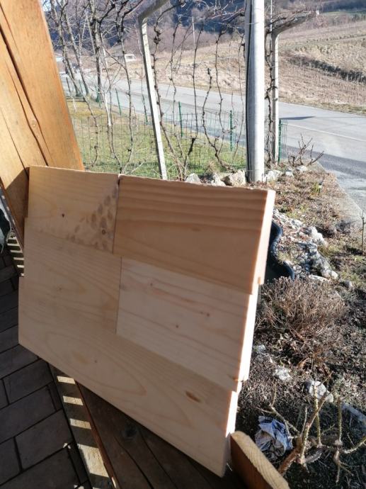 Daske su obrađene sa oba dvije strane. Širina daske (lica) 13cm debljina u gornjem dijelu 1.6cm u donjem dijelu 2.6cm. cijena m² 95kn
