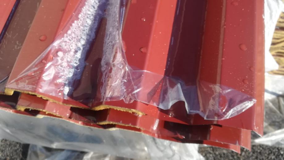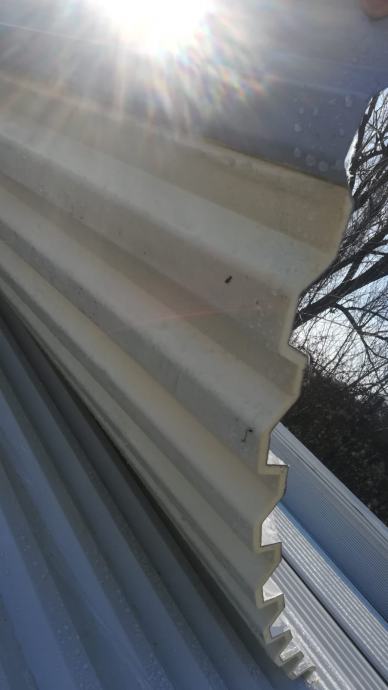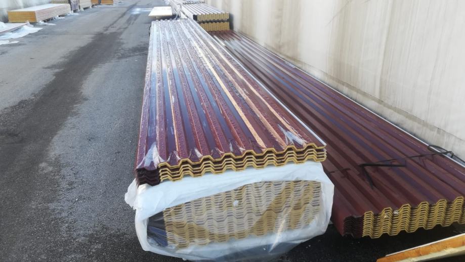 S DONJE STRANE PLOČE JE 10 MM PUR IZOLACIJE KOJA JE VIDLJIVA S DONJE STRANE I PRATI OBLIK VALA. OVIH 10 MM PUR IZOLACIJE SPREČAVA POJAVU KONDENZATA (POJAVU KAPLJICA S DONJE STRANE PLOČE) KOJI ONDA PADA U PROSTOR ISPOD PLOČE ŠTO JE ČESTA POJAVA KOD TRAPEZNOG LIMA BEZ IZOLACIJE.