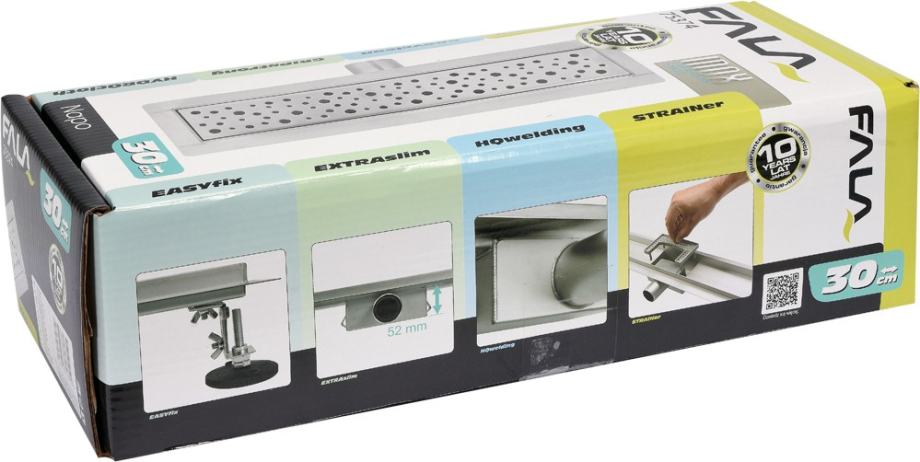 Linearni odvod Fala idealan je za elegantan i praktičan raspored kupaonice.Širok raspon raspoloživih veličina omogućuje optimalnu prilagodbu duljine dimenzija kabine ili pločica te vam omogućuje da slobodno planirate svoju tuš kabinu.Izrađen je od nehrđajućeg čelika AISI 304, koji se odlikuje otpornošću na koroziju,deterdžente i mehanička oštećenja.