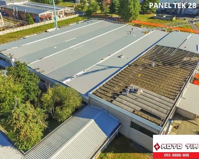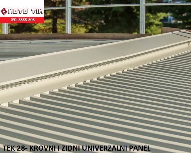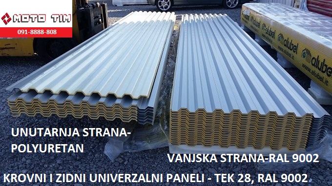 Panel TEK 28 u bijelo-sivoj boji, RAL 9002, je univerzalni panel koji se može staviti i na krov i na zid.