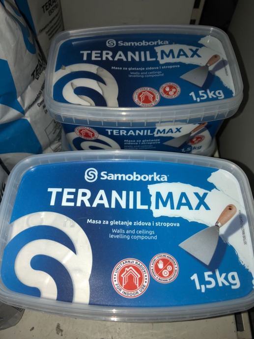 TERANIL MAX gotova izmješana disperzijska masa za gletanje namjenjena za fino gletanje unutarnjih zidova i stropova. Odlično popunjava manje šupljine, pukotine, ogrebotine i rupice u podlozi. Moguča izvedba reljefnih struktura.