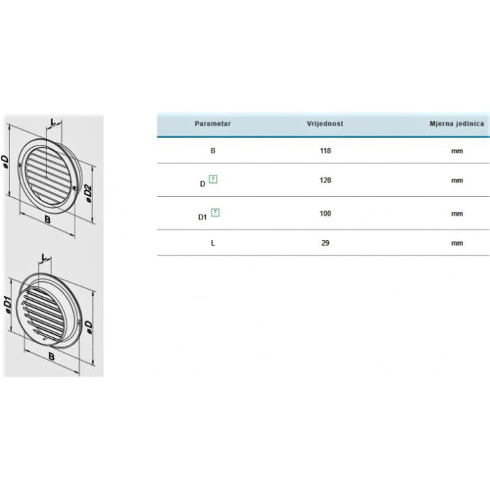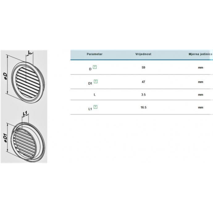 Ventilacijska rešetka sa mrežicom sa zaštitu od insekata.