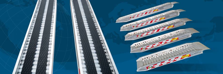 Alu rampe (staze) renomiranih marki, svih duljina i dimenzija za utovar svih vrsta i marki strojeva, za gumene i željezne gusjenice, nosivosti od 1 do 20 tona.
