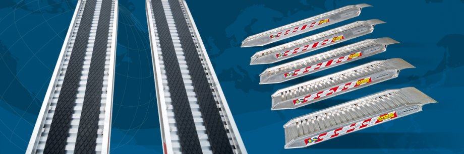 Aluminijske rampe (staze) renomiranih marki, svih duljina i dimenzija za ukrcaj svih vrsta i marki strojeva, za gumene i željezne gusjenice, nosivosti od 1 do 20 tona.