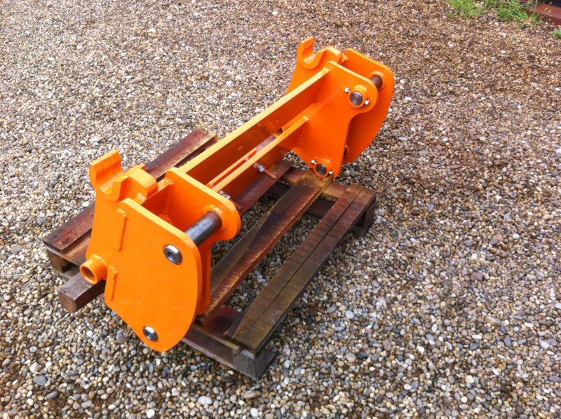 Brza spojka za JCB 4 CX prilagođena prihvatu korpe za klasično kopčanje.