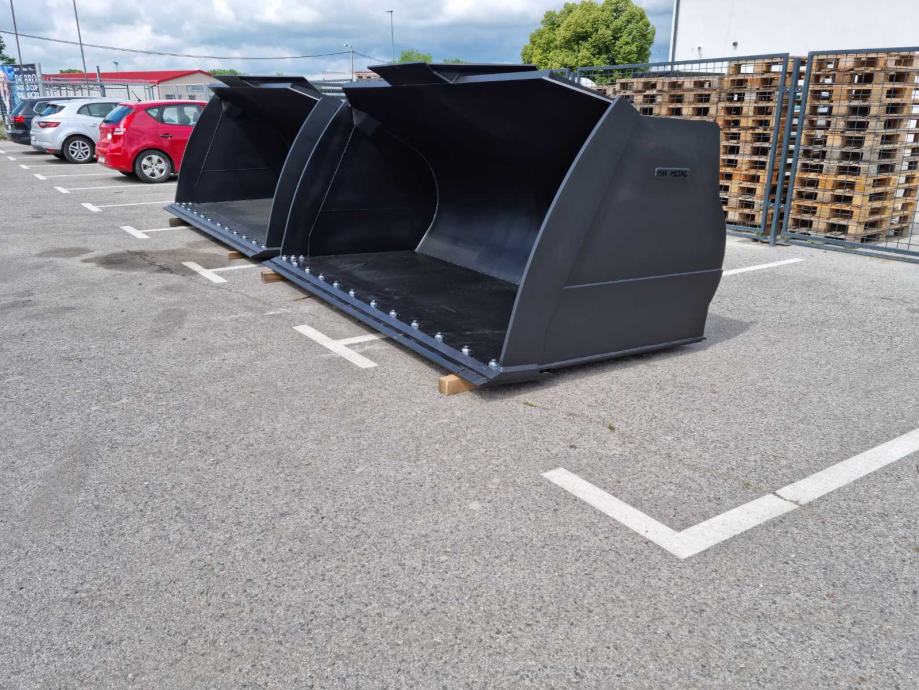 Utovarne korpe za teške materijale radimo po potrebi kupca za sver vrste strojeva u širinama od 2000mm do 3400mm, sa zapreminama od 2m3 do 5,5m3.