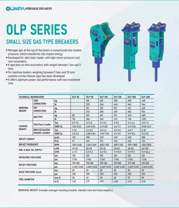 U slikama možete naći karakteristike svih OLIPMA modela !