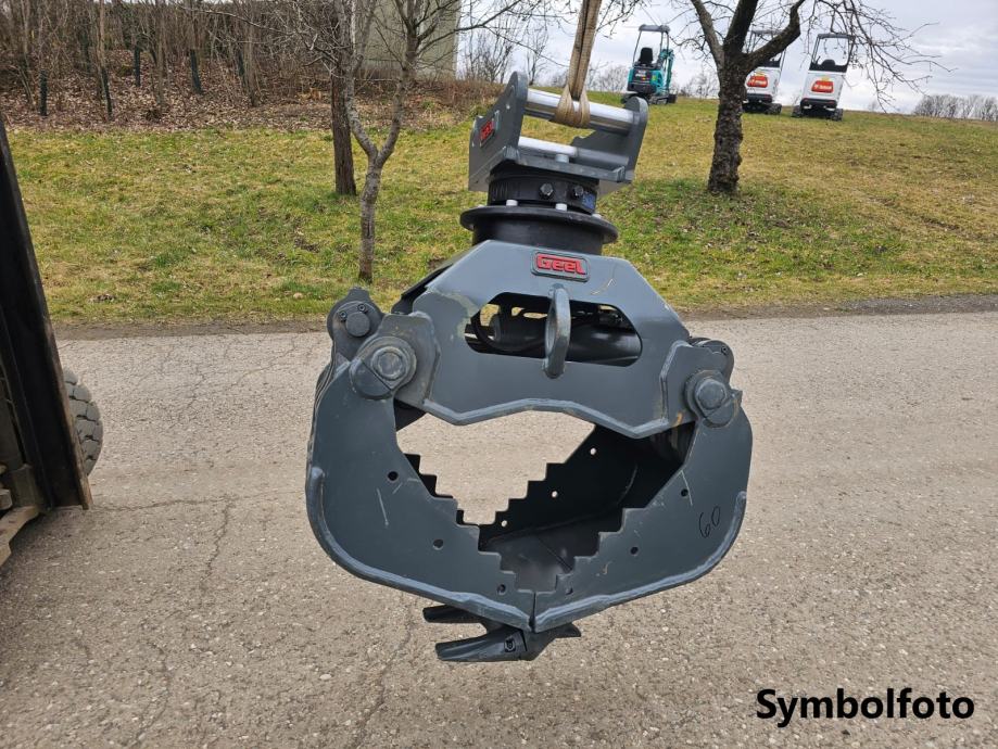 Geel UG15 univerzalna hvataljka 2024 s rotatorom Thumm 615, držač Geel SW035, nosivi uređaj 12-17 t Bager, širina otvaranja 2070 mm, širina ljuske 630 mm, sila zatvaranja 38,5 kN, radni tlak max 250 bar "otvaranje / zatvaranje", Protok ulja 100 l / min, Rotator: Radni tlak max 250 bara "okret", Protok ulja 63 l / min, težina 875 kg, referentni broj: 5018