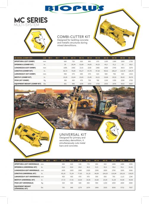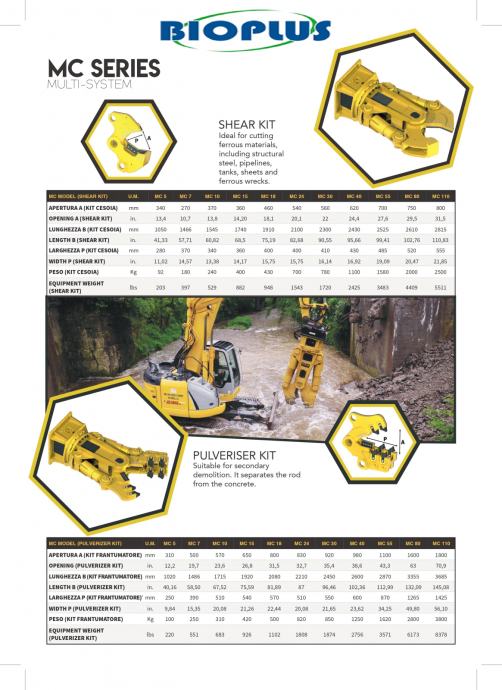 MC serija je najbolji izraz funkcionalnosti i svestranosti. Zahvaljujući raznim kompletima ( čeljustima ) primijenjenim na glavnu konstrukciju stroja, serija MC zadovoljava svaku potrebu i svaku situaciju tijekom radova na rušenju.