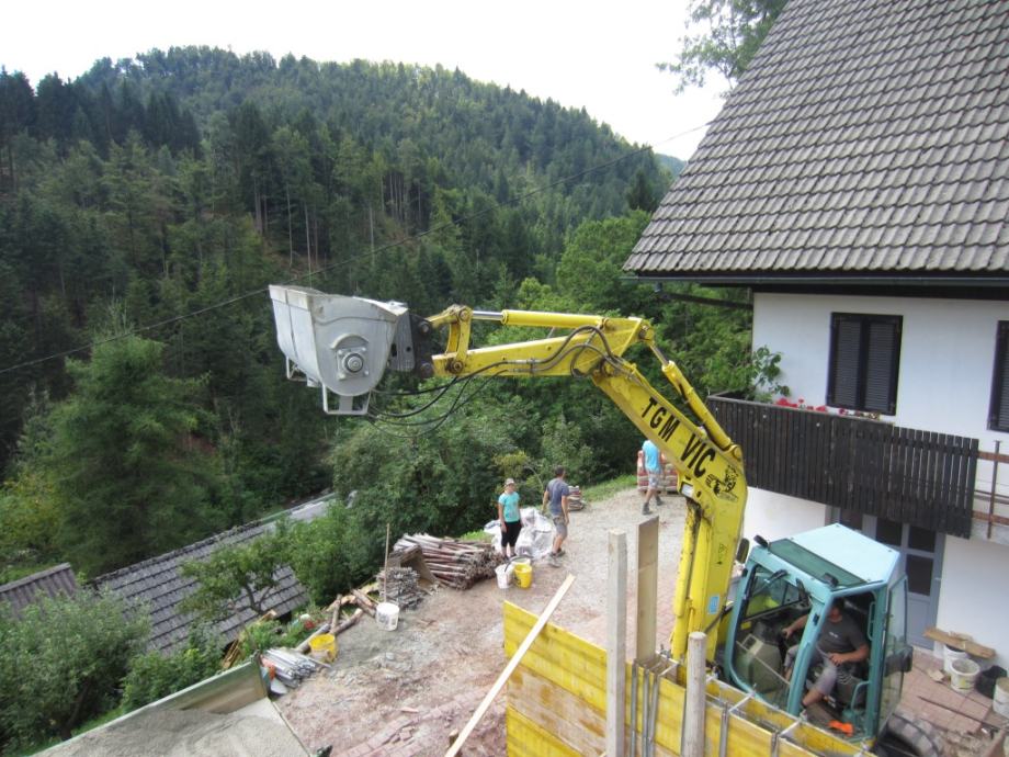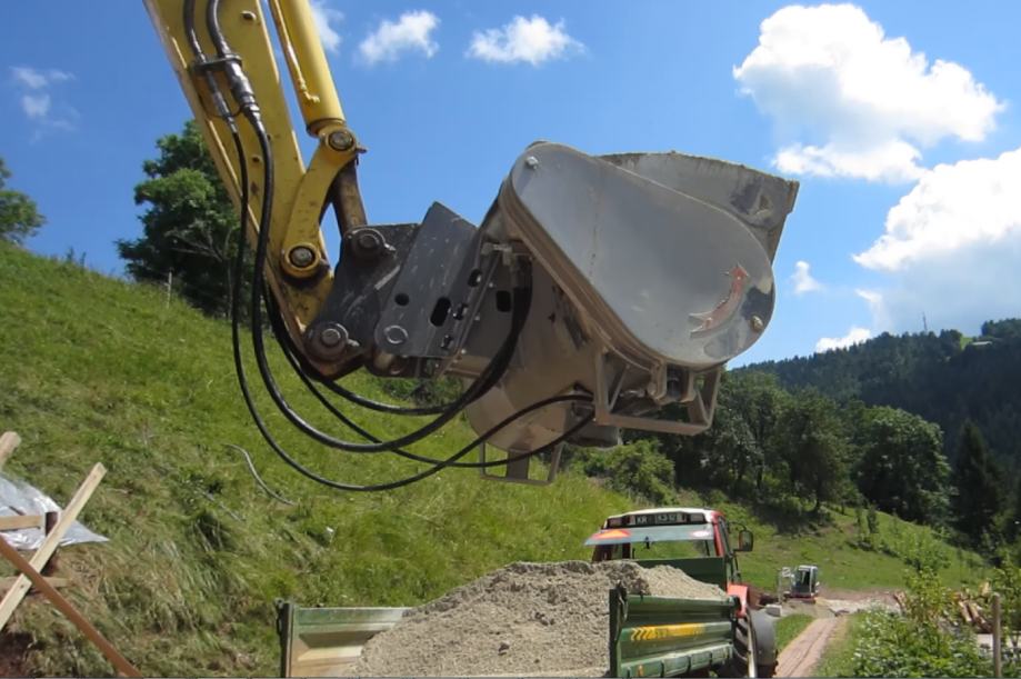 Miješanje betona sa bagerima na gradilištu, u gradu i izvan njega, u šumi, na farmi, u brdima i planinama.