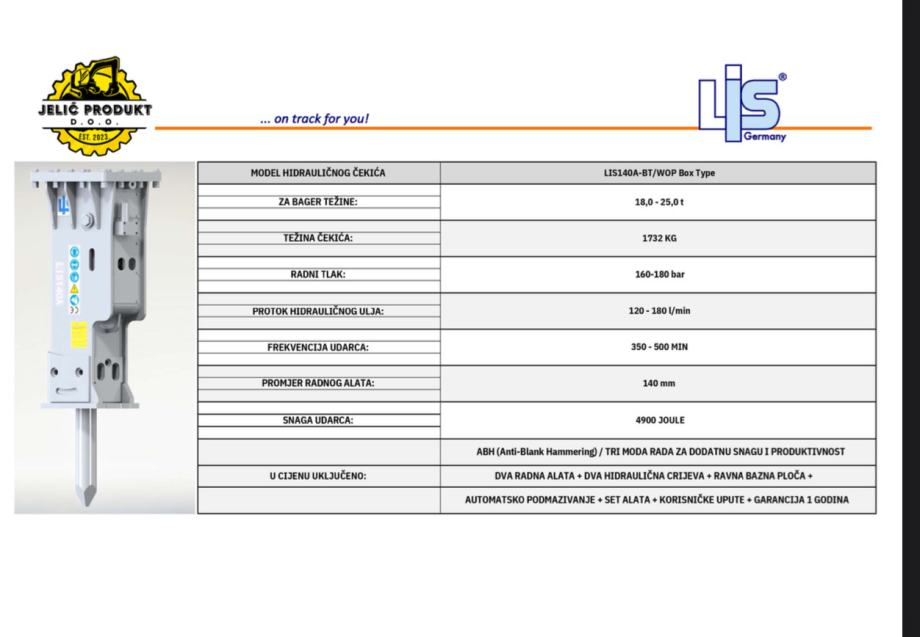 Tvrtka Jelić Produkt d.o.o. , nudi Vam visokokvalitetne hidraulične čekiće za građevinske strojeve Njemačkog proizvođača LINSER - LIS / ovlašteni smo zastupnici te servis za Hrvatsku i Sloveniju!