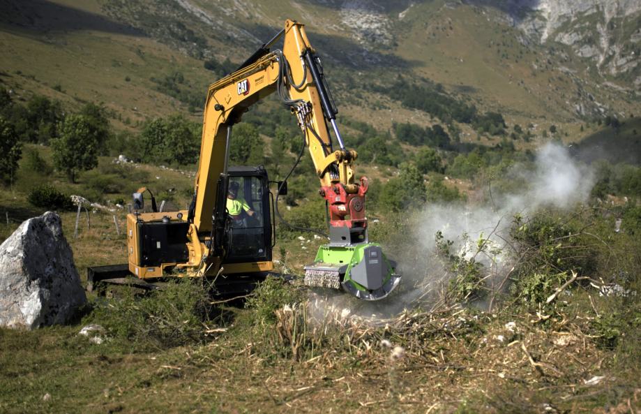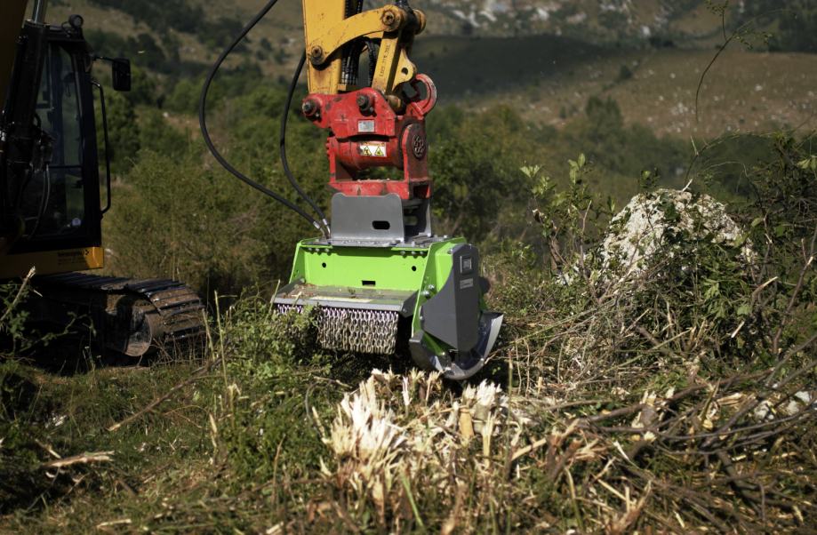 ✅ Malčer drobi gustu vegetaciju, panjeve i korijenje promjera do 25 cm u drvnu biomasu, što je bitno za sprječavanje požara i održavanje čistih zemljišta.