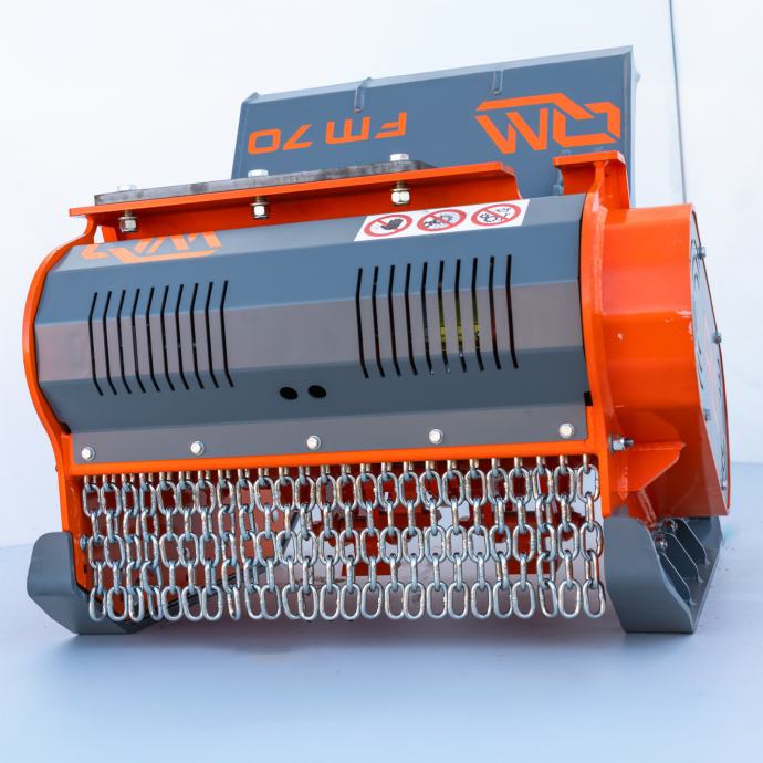 Mulčer za bagere QM FM70 MS profesionalni je mulčer namijenjen bagerima težine između 4 i 8 tona. S radnom širinom od 700 mm i masom od 374 kg idealan je za učinkovito malčiranje drvenastih ostataka, grmlja i guste vegetacije. Zahvaljujući robusnoj konstrukciji i promišljenim tehničkim rješenjima pouzdano radi i u zahtjevnim uvjetima.