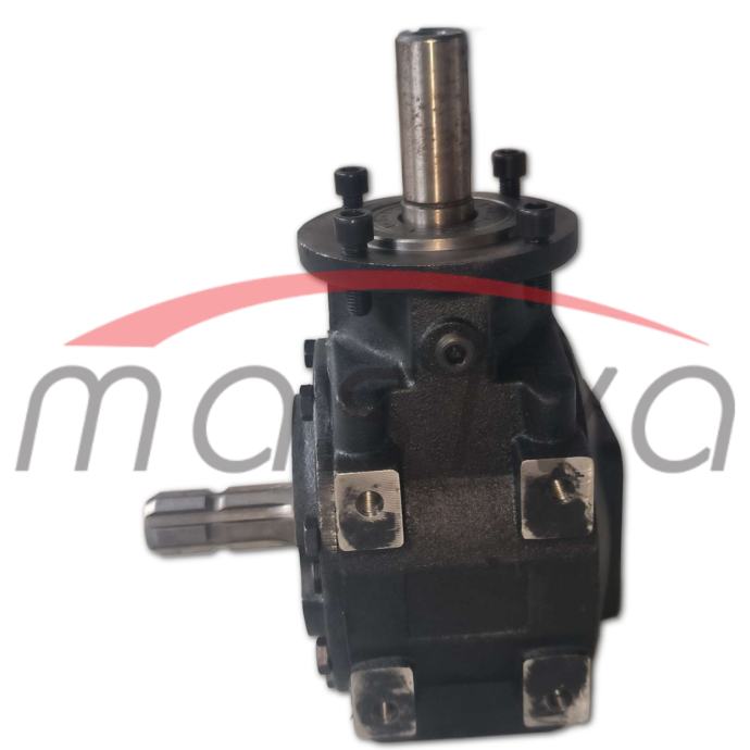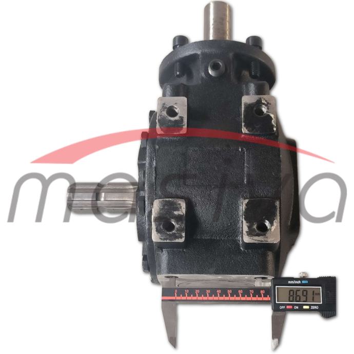 Pogonski reduktor oblika L, s prijenosom 1:2,9. Prijenos snage je maximalnih 40 konjskih snaga . Pogon ima slobodni hod. Veličina osovine sa šest rebra je standardna 1 3/8" (35 mm). Promjer pogonske osovine je 35 mm. Uljna brtva bočna 35x72x10 tc Uljna brtva donja 35x80x10 tc
