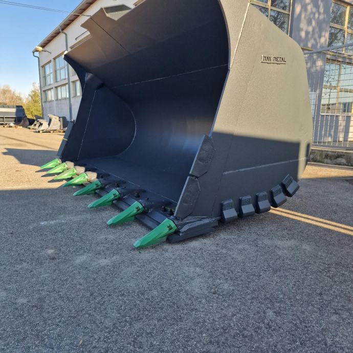 Utovarne korpe za teške materijale radimo po potrebi kupca za sver vrste strojeva u širinama od 2000mm do 3400mm, sa zapreminama od 2m3 do 5,5m3.