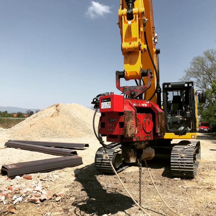 Vibrator može pobijati talpe i profile do 10m dužine. Na zahtjev nudimo i produžetak ruke za bager.