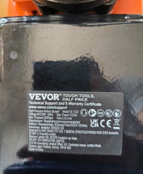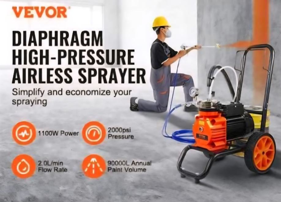 VEVOR kolica bezzračni raspršivač boje, membranski raspršivač boje 1100 W električni uređaj.