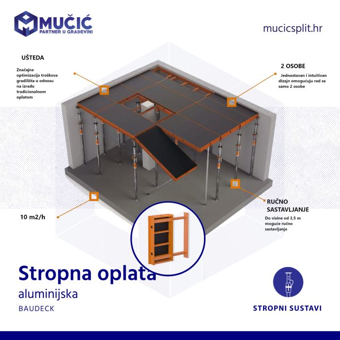 Aluminijska stropna oplata Baudeck je 100% kompatibilna sa aluminijskom oplatom Hunnebeck Topec.