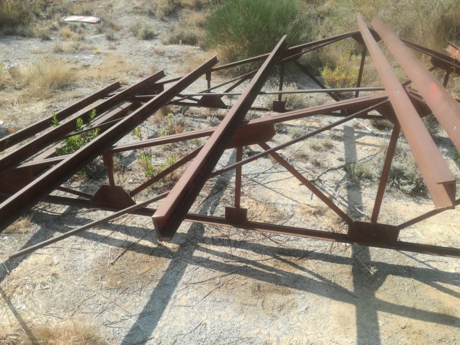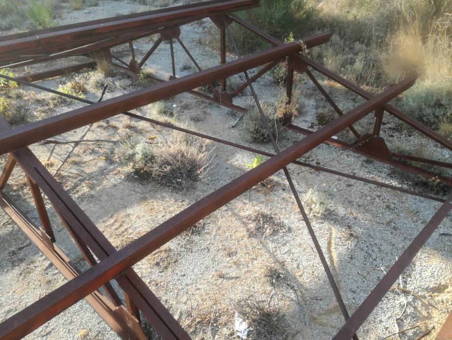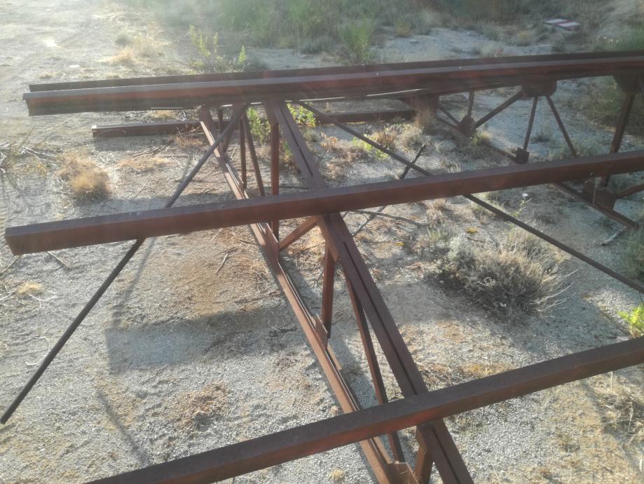 KONSTRUKCIJA ZA IZRADU NADSTRESNICE 7,3 x 4,3M , SASTOJI SE OD 2KOM RESETKASTI NOSAC DUZINE 7,2M , U PROFILI 100MM DUZINA 4,3M 10KOM, CETVRTASTI PROFIL 100x100 DUZINA 4,5M DVA KOM ,ZATEGE SU OD GLATKOG CELIKA PROMJETA 22 MM. KONSTRUKCIJA JE RASTAVLJENA ZBOG TRANSPORTA.