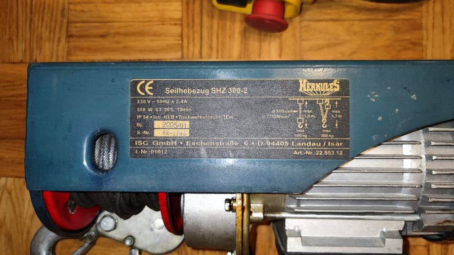 Prodajem električnu dizalicu/vitlo Herkules njemačke proizvodnje, nosivosti 300 kg.