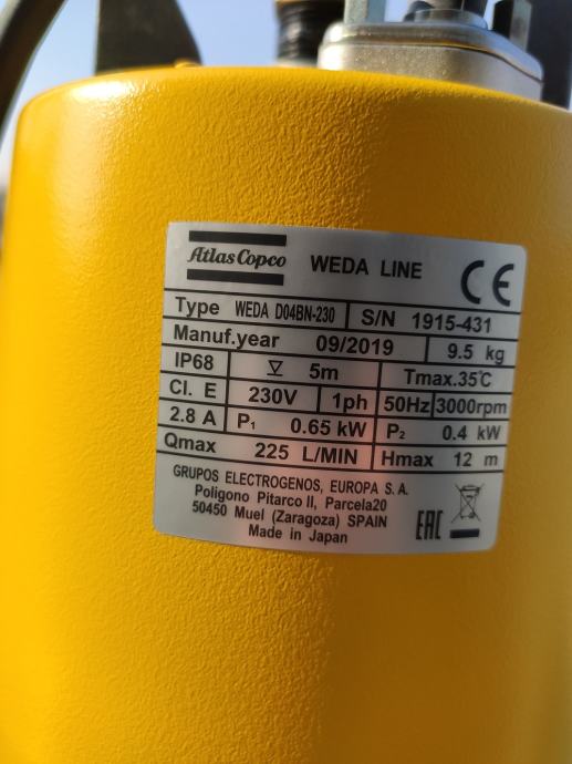 WEDA D04BN (za crpljenje vode i isušivanje visine usisa od 2mm)