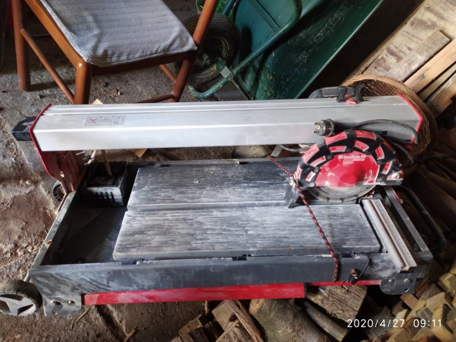 Stroj reže kamen i keramiku do 3cm debljine. Ima svoju pumpu pa automatski zalijeva vodom i hladi pilu. Korišten svega nekoliko puta. Cijena fiksna