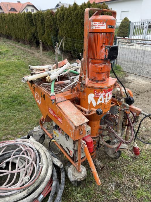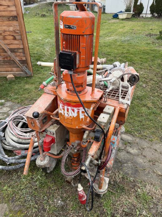 Prodajem stroj G4 za strojno žbukanje. Stroj uključuje 4 vretena, 4 miksera, kratki i dugi pištolj za nanošenje, ROTOQUIRL posudu za miješanje, crijeva za materijal i zrak te električni produžni kabel.