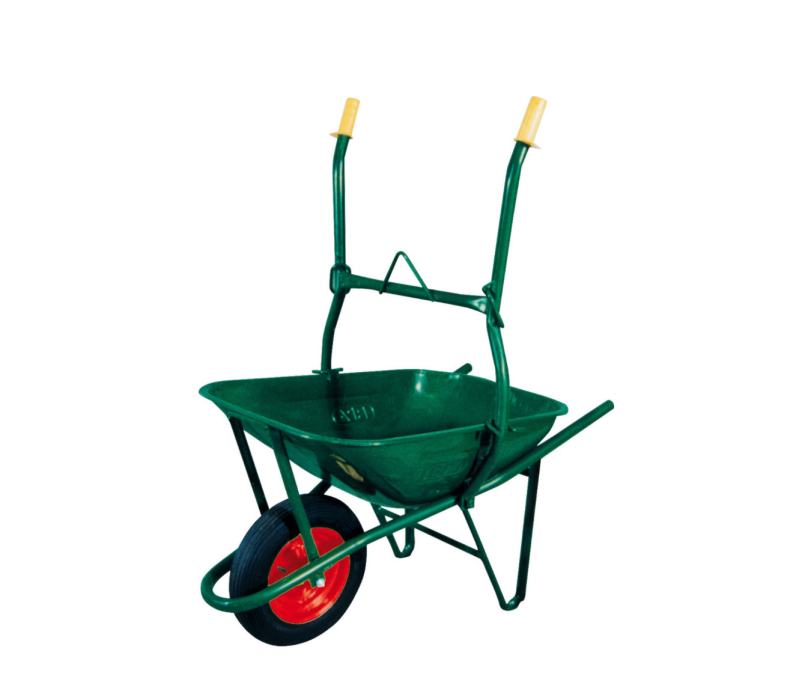 Preklopna kolica, nesastavljena, s pocinčanom posudom od čeličnog lima. Rub protiv ozljeda. Čvrst cjevasti okvir, obojen. Neklizajuće ručke od polietilena.