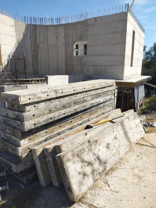 cca 120 m2 sa kutevima i spojnom priborom. Oplata je visine 2,70 m i u solidnom stanju. Lagana je i moguce je koristenje bez upotrebe krana.