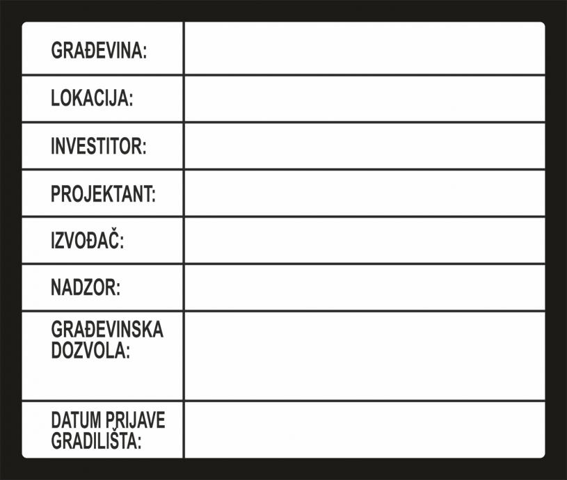 PLOČA ZA OZNAČAVANJE GRADILIŠTA (s praznim poljima za upis podataka o građevini)