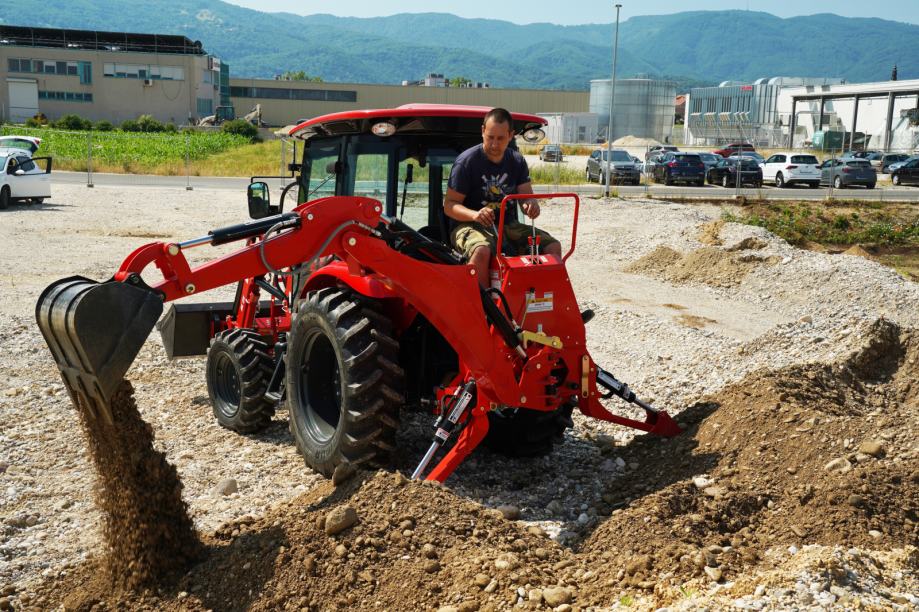 Talijanski hidraulični sustav osigurava pouzdan protok i miran rad, dok hidraulične stabilizacijske noge omogućuju čvrsto oslanjanje ruke na svim vrstama terena. Upravljanje putem EURO komandi je intuitivno, a zakretanje od 180° omogućuje jednostavno odlaganje materijala lijevo ili desno bez potrebe za pomicanjem traktora.
