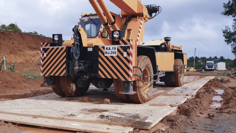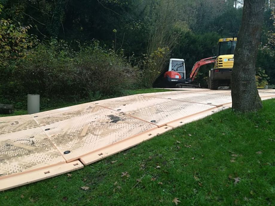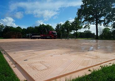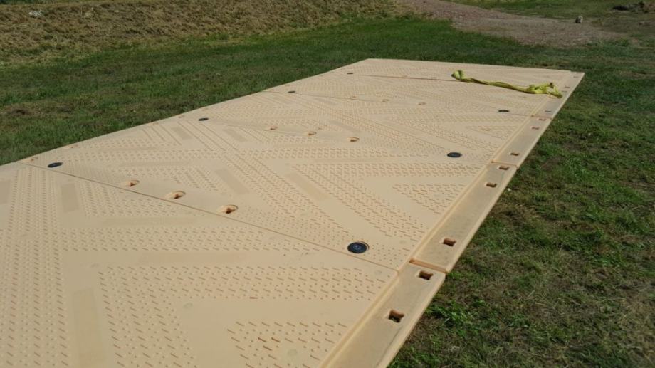 Isotrack X podloga za siguran i privremen prijelaz mekanog tla u extremno vlažnim vremenskim uvjetima.