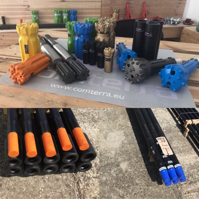 - DTH bušaće cijevi za bunare i kamenolome promjera 42-44, 48-51, 54-57, 60-63, 67-73, 76, 79, 83, 89, 95, 102, 114, 127, 140, 152, 159, 168, 177, 194, 203,219,235,254,273 mm (2 3/8'' API REG, 2 7/8'' API REG, 3 1/2'' API REG, 4 1/2'' API REG, 5 1/2'' API REG, 6 5/8'' API REG